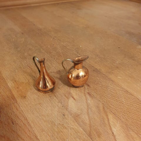 Miniature kande i messing.H 3 cm, B 7 cm.Flot og velholdt, gå til varen, for flere billeder.(Montre).