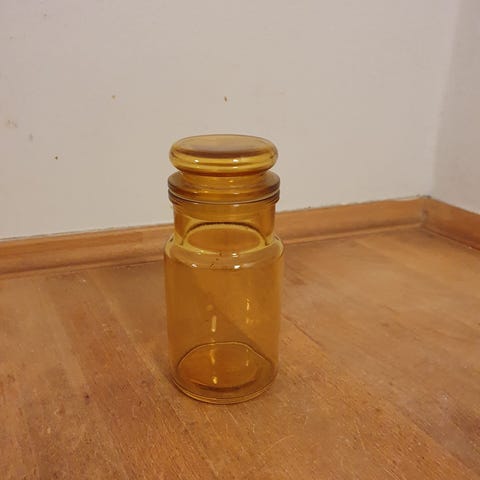 Blåt apoteker glas med låg.H 19 cm, B 8 cm.Flot og velholdt, uden skår. Gå til varen, for flere billeder.(Reol 1).
