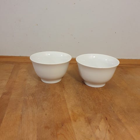 To stk skåle i porcelæn.H 7,5 cm, Dia 14 cm.Sælges samlet, begge velholdte. Gå til varen, for flere billeder.(Reol 9).