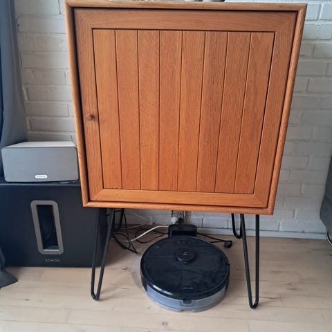 Skab i teaktræ med overdel.H 110 cm, B 101 cm, D 36,5 cm.Gå til varen, for flere billeder.Møbler står på fjernlager, så efter bestilling, aftales tidspunkt for afhentning/levering. Levering fra 500 kr i Købehavns området til kantsten. Bæres op, to mand, fra 800 kr.