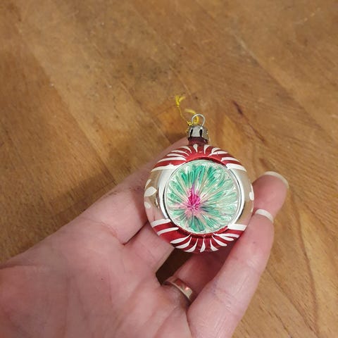 Halvkugle med flotte farver og detaljer.H 5,5 cm, Dia 3 cm.Flot og velholdt, gå til varen for flere billeder.(Julepynt)