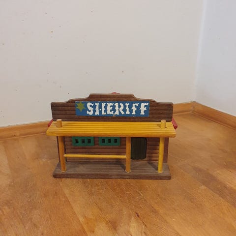 Drugstore hus i træ.H 18 cm, B 25 cm, D 19 cm.Flot og velholdt, gå til varen, for flere billeder.(Reol 1).