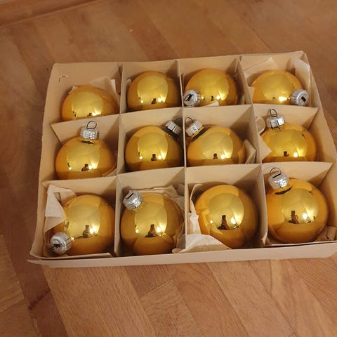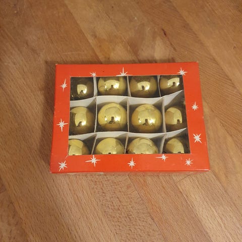 12 styks vintage kugler.Sælges samlet.H 7 cm, B 5,5 cm.Flot og velholdt, gå til varen for flere billeder.(Julepynt 7)