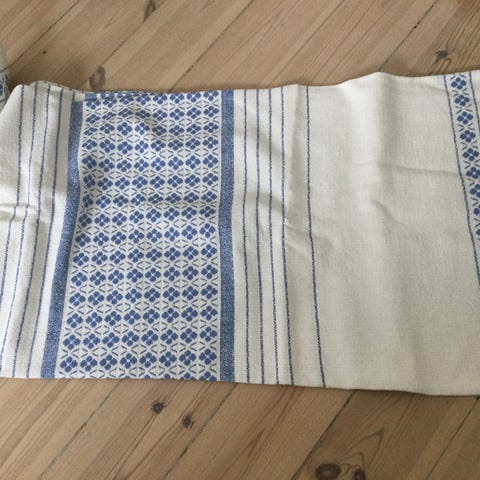 Blå dug med små reb.L 176 cm, B 136 cm.Flot stand, gå til varen for flere billeder.