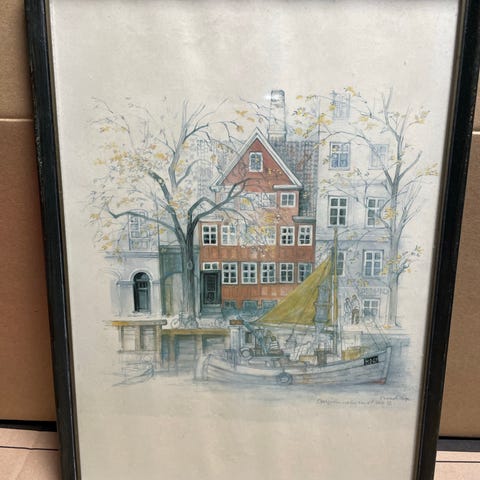 Mads Stage, Overgaden under vandet.H 38 cm, B 28,5 cm.Flot og velholdt, gå til varen, for flere billeder.(L).