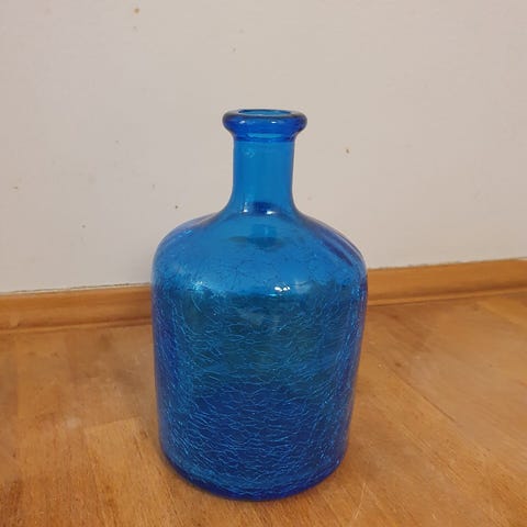 Blå vase i glas.H 25 cm, Dia hul 9 cm.Flot og velholdt, gå til varen, for flere billeder.(Reol 9).