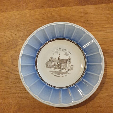 Fajance, Holmens Kirke 350 år - julen 1969Flot og velholdt, gå til varen for flere billeder.