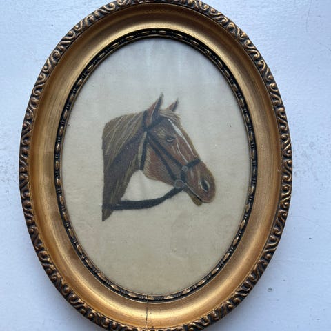 Indrammet broderi af hest.H 30 cm, B 37 cm.Flot og velholdt, gå til varen, for flere billeder.(L i pose).