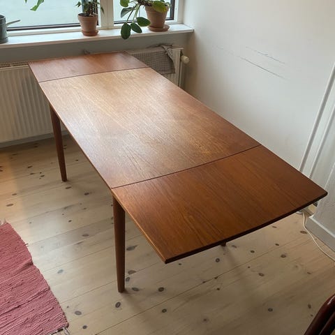 Firkantet bord i teaktræ.H 50 cm, B 58 cm, D 40 cm.Gå til varen, for flere billeder.Afhentes på Nørrebro efter aftale, sendes ikke.(N).