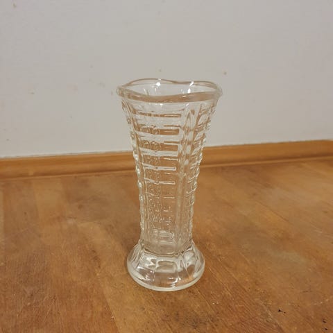 Klar vase i glas.H 20 cm, B 5 cm.Flot og velholdt, gå til varen, for flere billeder.(Reol 3).