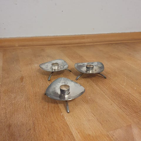 Lysestager i pletsølv.H 12 cm, Dia bund 11 cm.Sælges som sæt, gå til varen, for flere billeder.(Reol 9).