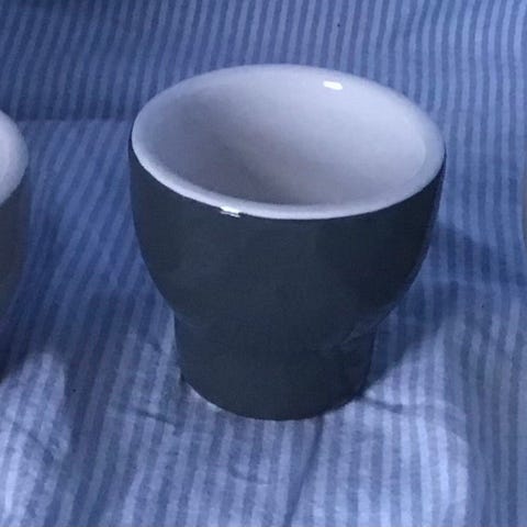 2 styks æggebægere fra Stelton.H 4,5 cm, Dia 5 cm.Sælges samlet, gå til varen, for flere billeder.(Reol 3).