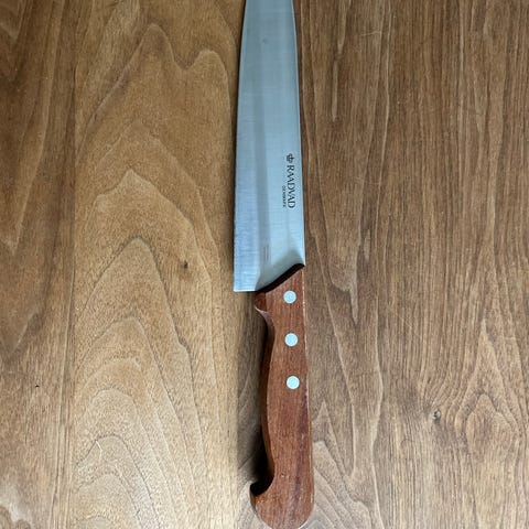 Kniv i teaktræ.L 16 cm.Flot og velholdt.(Reol 6 - Fletkurv).