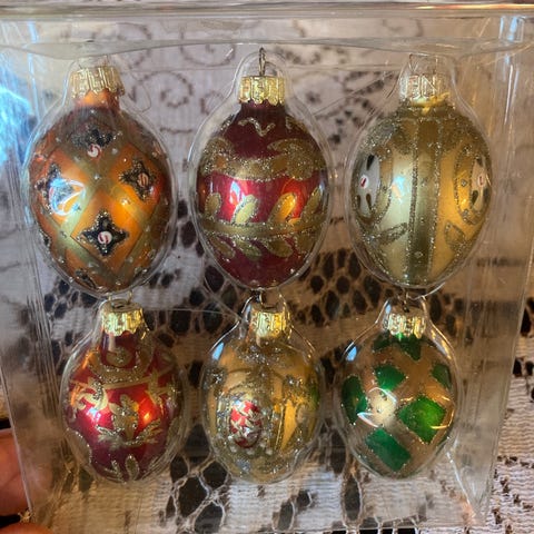 Julekugler med flotte detaljer.Dia 7 cm.Har 10 styks på lager, prisen er stykket.Flot og velholdt, gå til varen for flere billeder.(Julepynt 6)