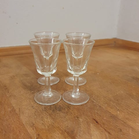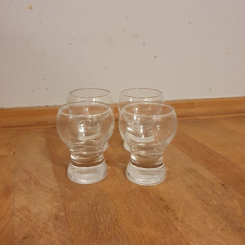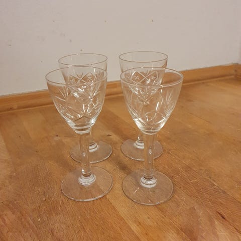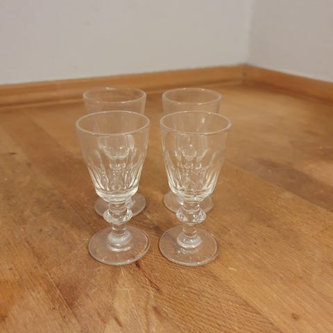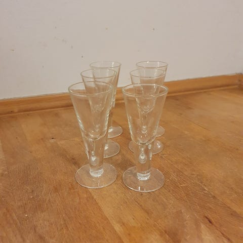 6 styks snapseglas med slibninger.H 11,5 cm, Dia 5 cm.Sælges samlet, alle velholdte. Gå til varen, for flere billeder.(Loftet).