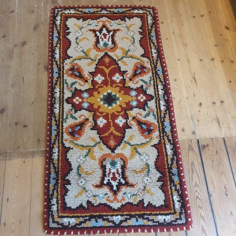 Kelim tæppe.L 131 cm, B 68 cm.Er lidt snavset, ikke pletter, blot af brug. Gå til varen, for flere billede. Afhentes på Nørrebro, sendes ikke.(L).