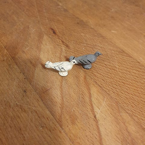 2 hvide ænder, L 3 cm.J. Hill & Co, England.Plastik legetøj.Gå til varen for flere billeder.(Legetøj 1)