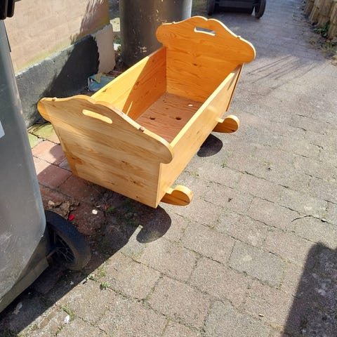 Vintage vugge i træ.H 31 cm, B 60 cm, D 30 cm.Flot og velholdt, gå til varen, for flere billeder.(N).