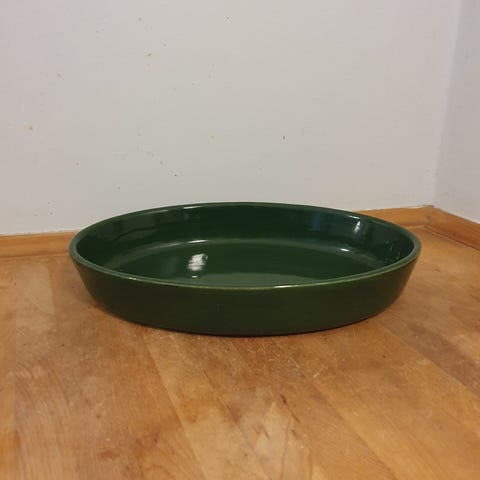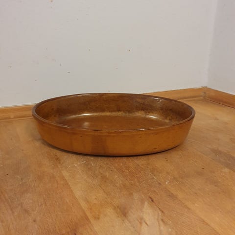 Ovnfast fad med blomster motiver.H 5,5 cm, B 27, 5 cm, D 18,5 cm.Har brugsspor på kant, gå til varen, for flere billeder.(Reol 3).