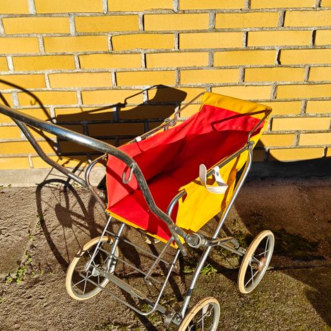 Vintage klapvogn i læder og metal
