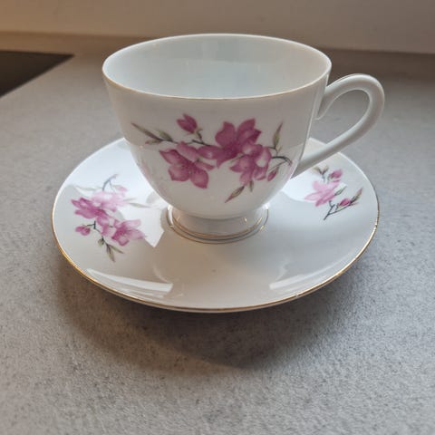 Kop med blomstermotiv