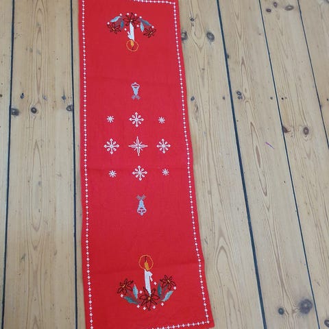 Vintage jule bordløber med broderier.L 88 cm, B 24 cm.Flot stand, gå til varen for flere billeder.