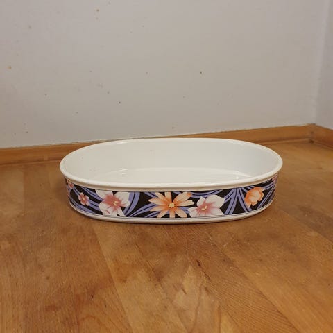 Lille fad med blomster motiv.L 20 cm, B 17,5 cm.Gå til varen, for flere billeder.(Reol 2).