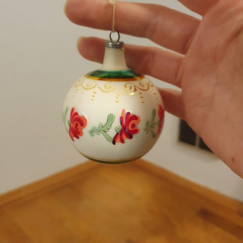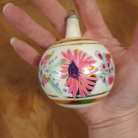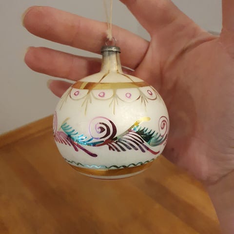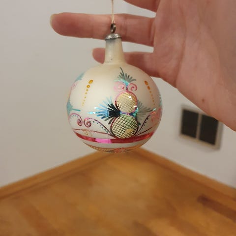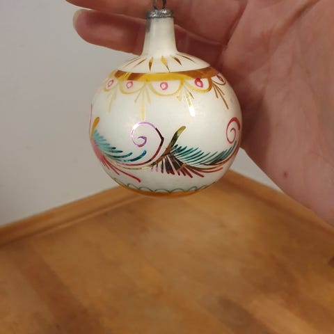 Julekugle med flotte detaljer.H 10 cm, B 7 cm.Flot og velholdt, gå til varen for flere billeder.(Julepynt 7)