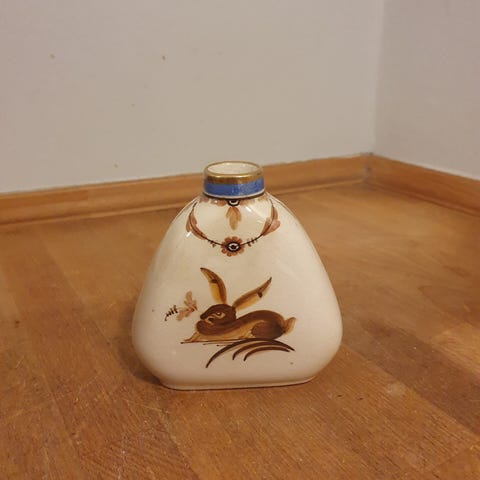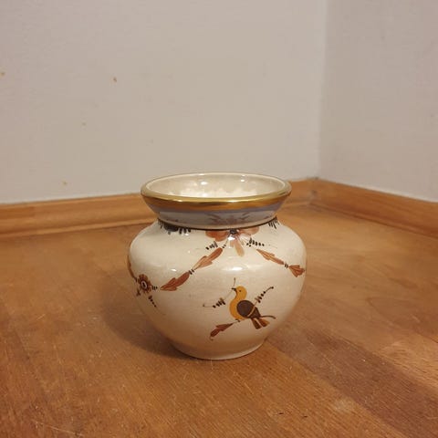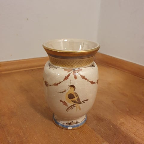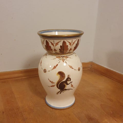 Aluminia vase med and, Nils Thorsson.H 17 cm, Dia hul 10 cm, Dia 13 cm.Nr 1412/1383.1. sortering.Har skår og revner, gå til varen, for at se brugsspor.