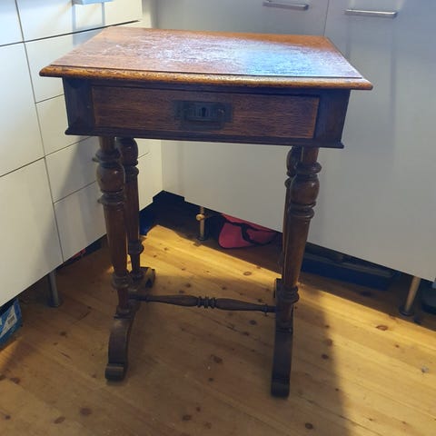 Bord med svungne ben og skuffe