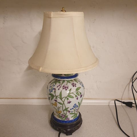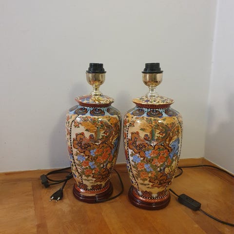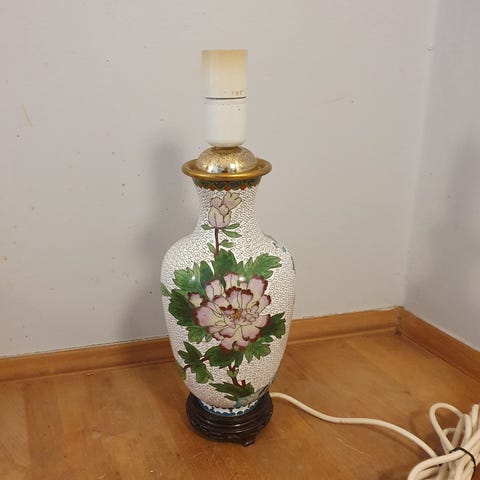 Nyere kinesisk lampe i porcelæn.H 48 cm med pære, H uden pære 43 cm, Dia 18 cm.Flot og velholdt, gå til varen, for flere billeder.
