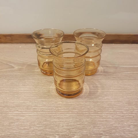 4 styks tyrefægter glas.H 11,5 cm, Dia 5 cm.Et af glassene har lidt skrab på guldkant, gå til varen, for flere billeder.