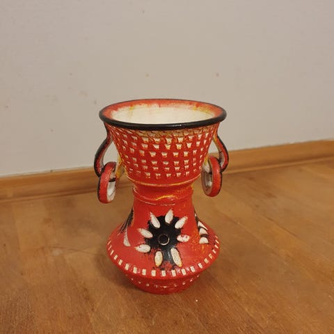 Bemalet vase i keramik.H 22 cm, Dia 11 cm.Flot og velholdt, uden skår. Gå til varen, for flere billeder.