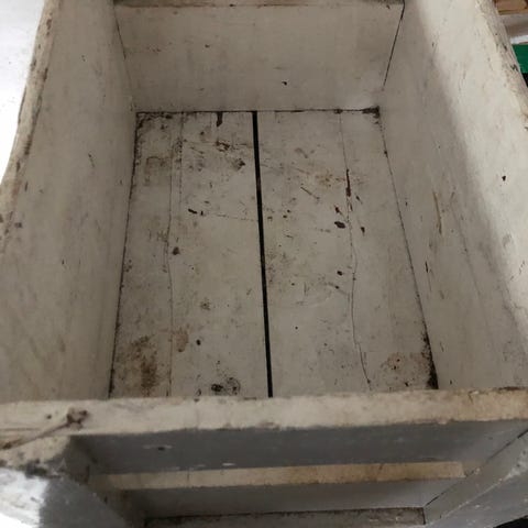 Gammel trækasse.H 16 cm, B 73 cm, D 39 cm.Gå til varen, for flere billeder. Kan afhentes på Nørrebro efter aftale, sendes ikke.(N).