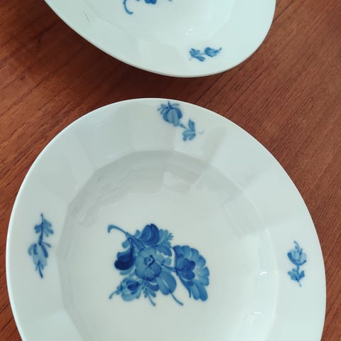 Kantet kande fra Blå Blomst, Royal Copenhagen.3. sortering, ses på snuden, har skrab.H 20 cm, B 18 cm, D 9 cm.Nr 10/8526.Flot og velholdt, uden skår. Gå til varen, for flere billeder.