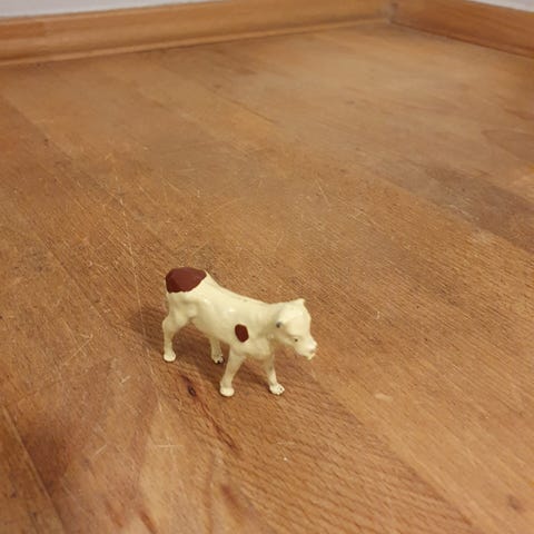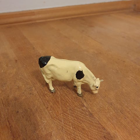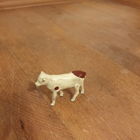 Ko, H 4,5 cm, B 8 cm.J. Hill & Co, England.Metaldyr.God stand, få brugsspor, gå til varen for flere billeder.(Legetøj 1)