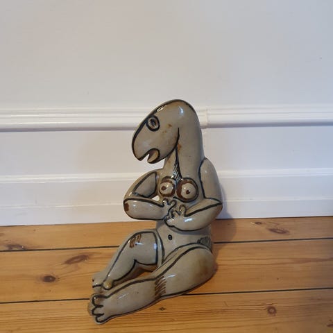 Jagthund med bytte, Bing & Grøndahl.1. sortering.Nr 2015.H 23,5 cm, B 30,5 cm.Flot og velholdt, uden skår. Gå til varen, for flere billeder.