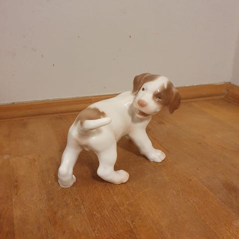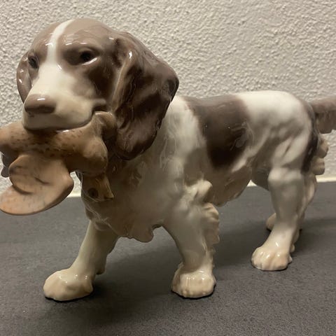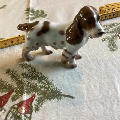 Stående cocker spaniel fra Bing & Grøndahl.1. sortering.Nr 2172.H 8 cm, B 13 cm.Flot og velholdt, uden skår eller lignende. Gå til varen, for flere billeder.