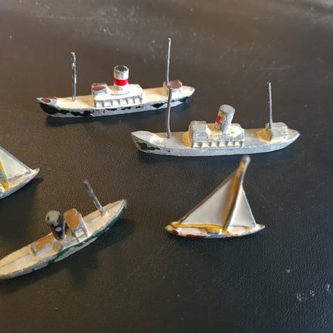 Skib i tin, L 13 cm.Gå til varen for flere billeder.(Legetøj 1)