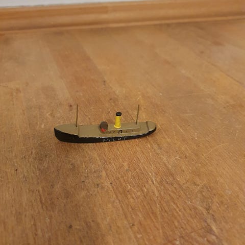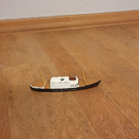 Skib i tin, L 13 cm