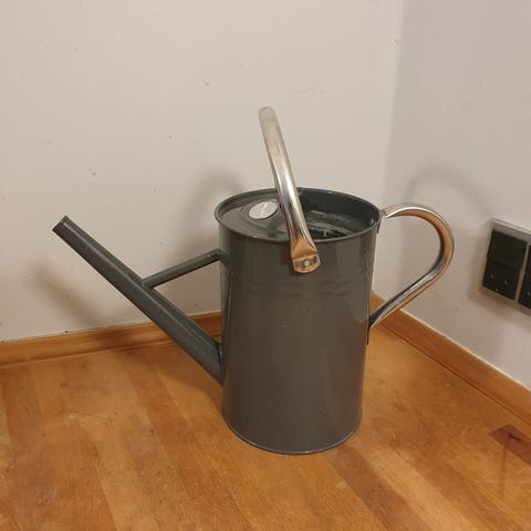 Vandekande i metal.H 18/33 cm, B 66 cm, D 19 cm.Fin stand, gå til varen, for flere billeder.