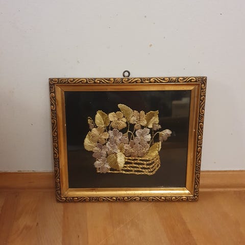 Indrammet tørre blomster.H 21 cm, B 19 cm.Flot og velholdt, gå til varen, for flere billeder.(Reol 1).