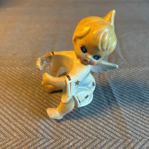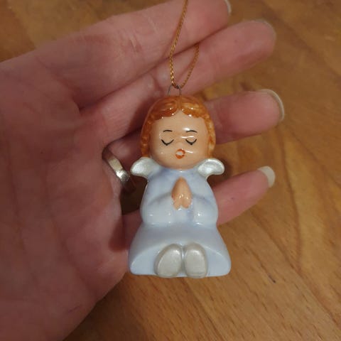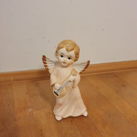 Lille vintage engel i porcelæn.H 7 cm, B 3,5 cm.Flot og velholdt, gå til varen, for flere billeder.(Julepynt 1).