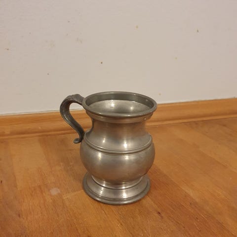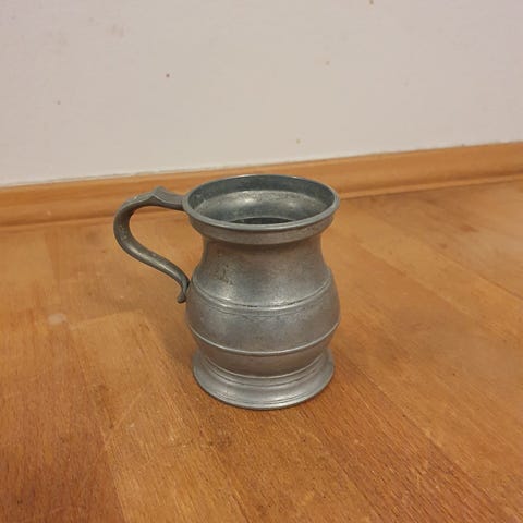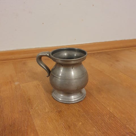 Tin kande, H 12 cm, B 8 cmGå til varen for flere billeder.