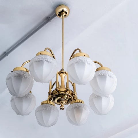 Gentry hængelampe i poleret messing med fem arme.H 65 cm, Dia 31 cm.Flot og velholdt, uden skår eller lignende.