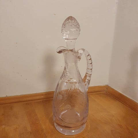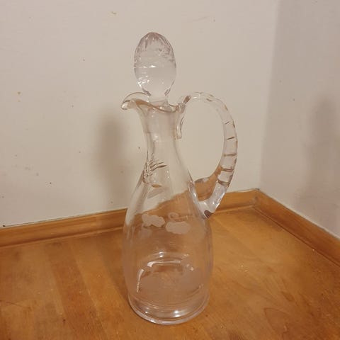 Karaffel med indgraveret svaner.H 23 cm, Dia 16 cm.Flot og velholdt, gå til varen, for flere billeder.