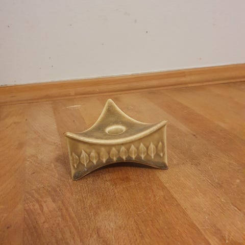Lysestage til kronelys, fra Kronjyden/Relief.H 6 cm, B 10 cm, D 10 cm.Har 2 styks på lager, prisen er stykket. Alle er velholdte, uden skår, gå til varen, for flere billeder.