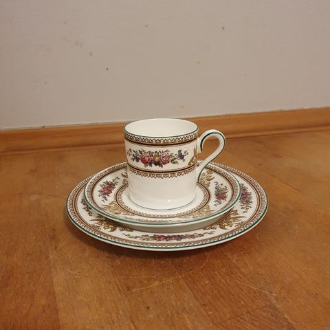 Wedgwood, Bone China kop/underkop/tallerken.Kop H 6 cm, Dia 5,5 cm.Underkop Dia 12 cm.Kagetallerken Dia 15,5 cm.Alle dele er velholdte, gå til varen, for flere billeder. Sælges samlet.