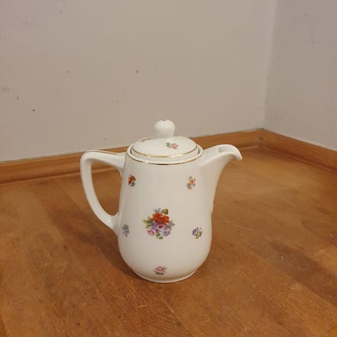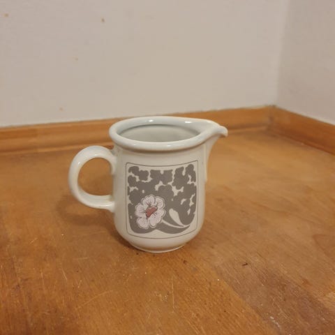 Flødekande fra Stavanger Flint.H 7,5 cm, B 9,5 cm, D 5,5 cm.Flot og velholdt, uden skår eller lignende. Gå til varen, for flere billeder.