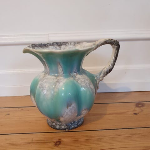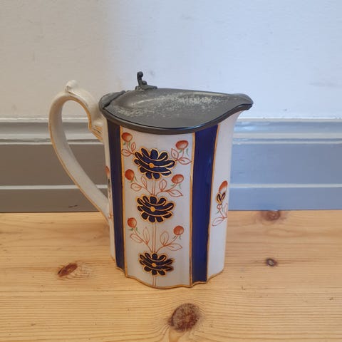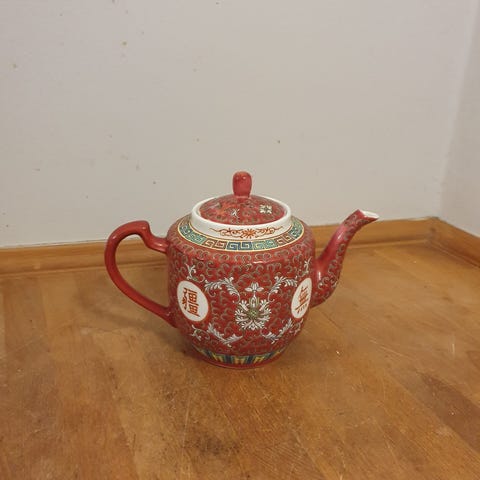 Kinesisk vintage kande med låg.H 16 cm, B 21 cm.Flot og velholdt - har dog lidt skrab på guld. Gå til varen, for flere billeder.